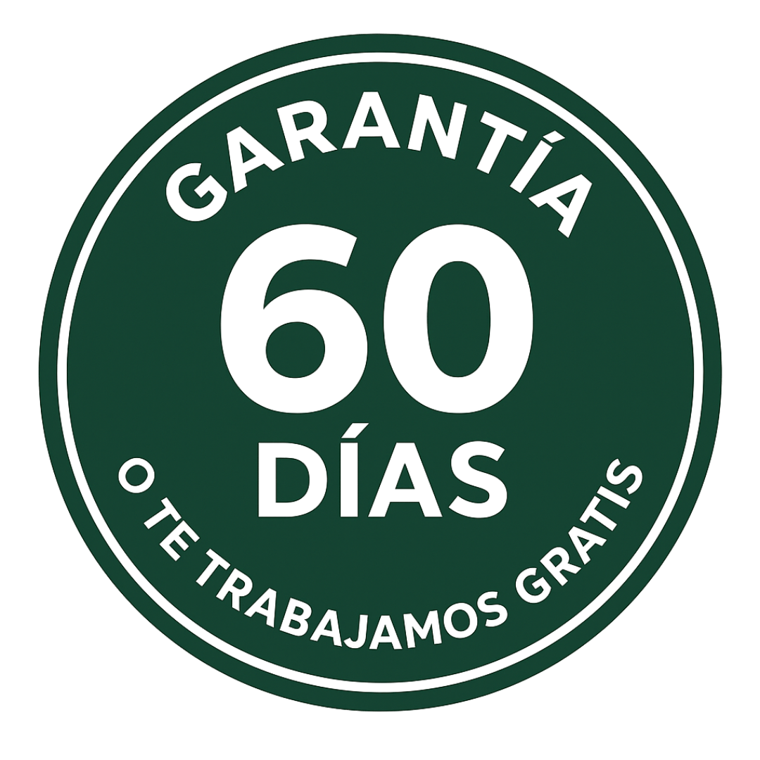 Si no alcanzamos las métricas pactadas en 60 días, trabajaremos sin costo adicional hasta lograrlas, siempre que el cliente cumpla con las condiciones del contrato.
